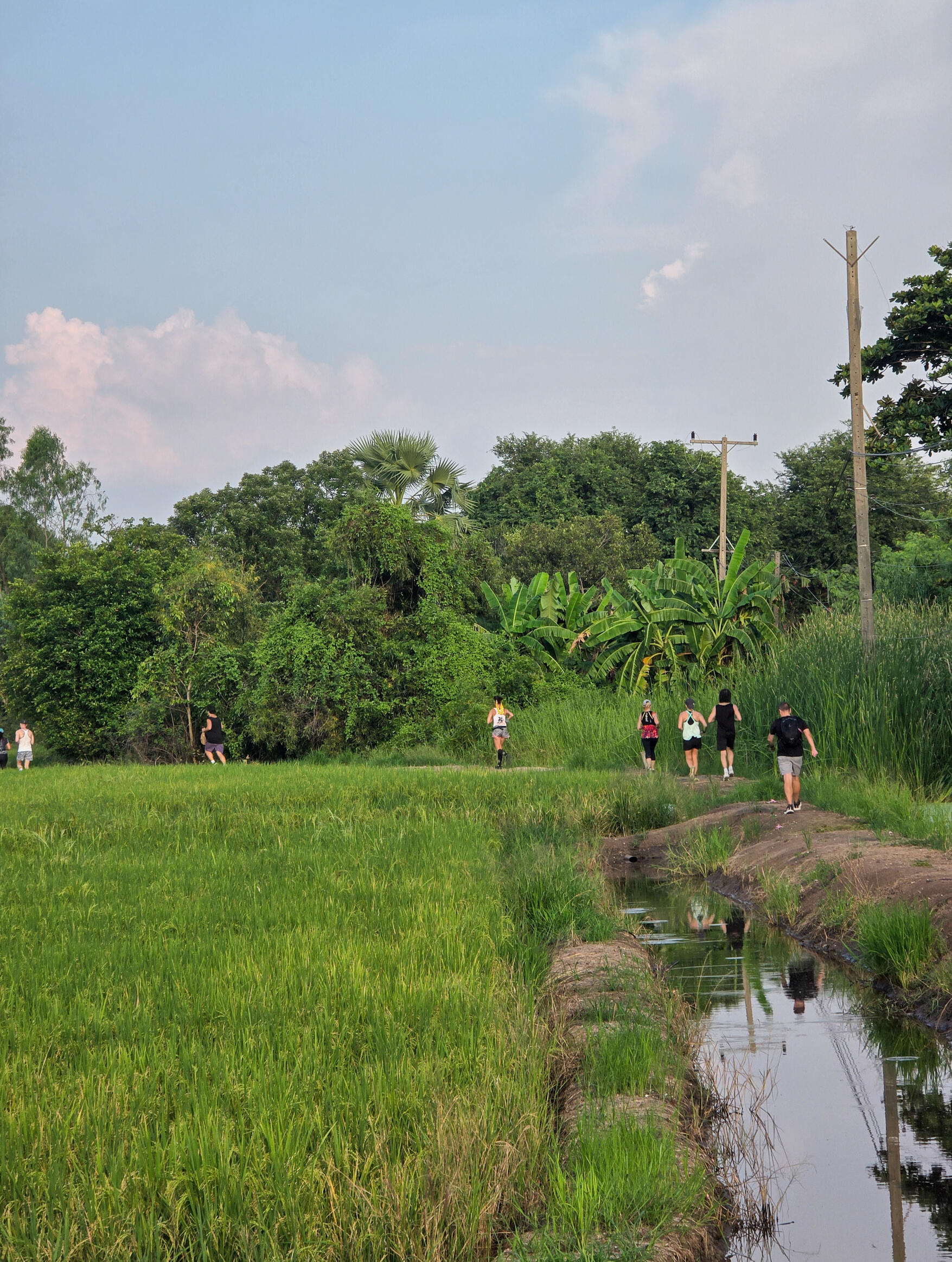 On run Saturdays, we meet at 1:30 PM, just a 2-minute walk from On Nut BTS. From there, we provide transport for around 250 THB, taking you to scenic locations about 50 minutes outside of Bangkok. If you'd rather drive or arrange your own transport, simply meet us at the run location. The run starts at 3:15 PM, and we’ll be ready to start!